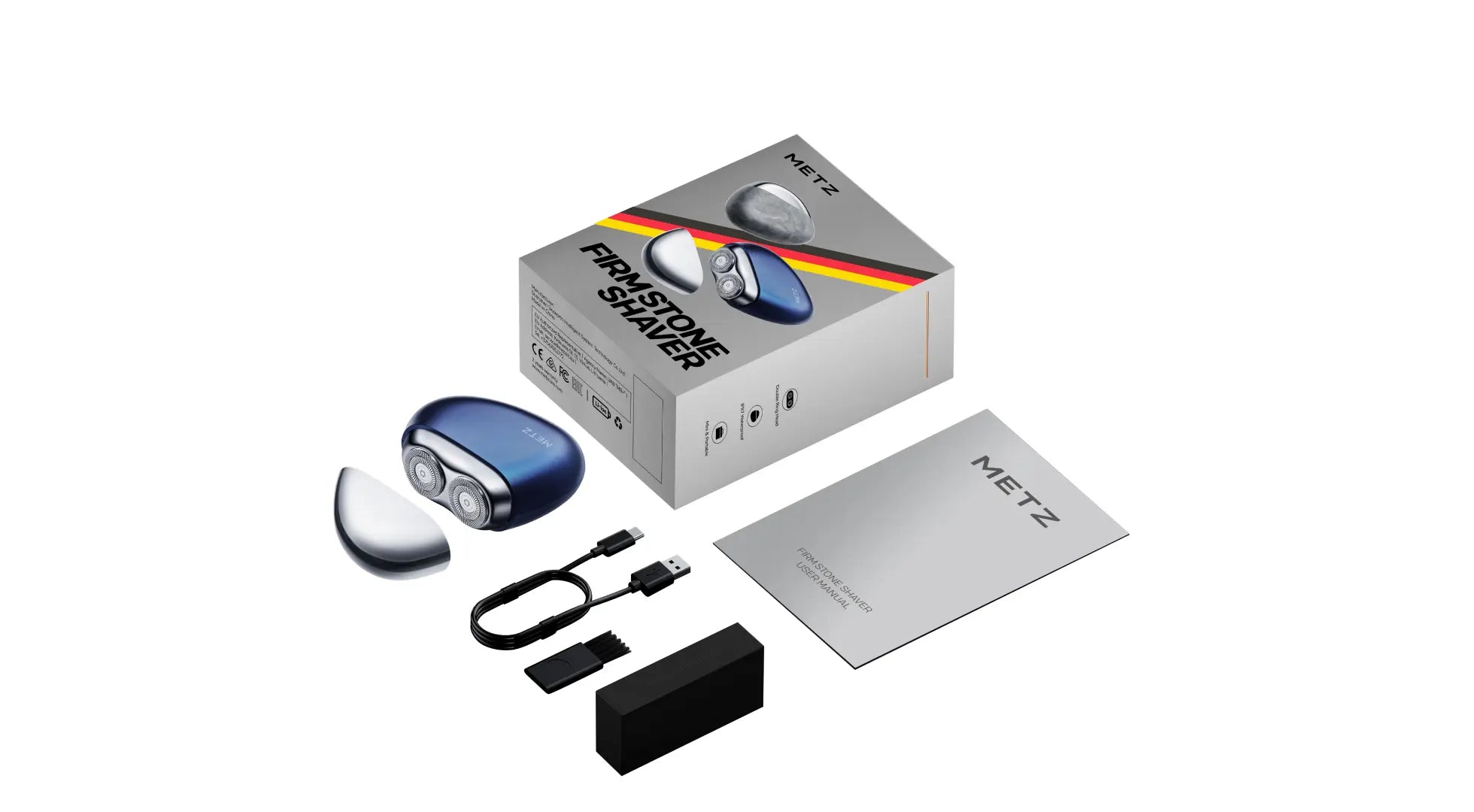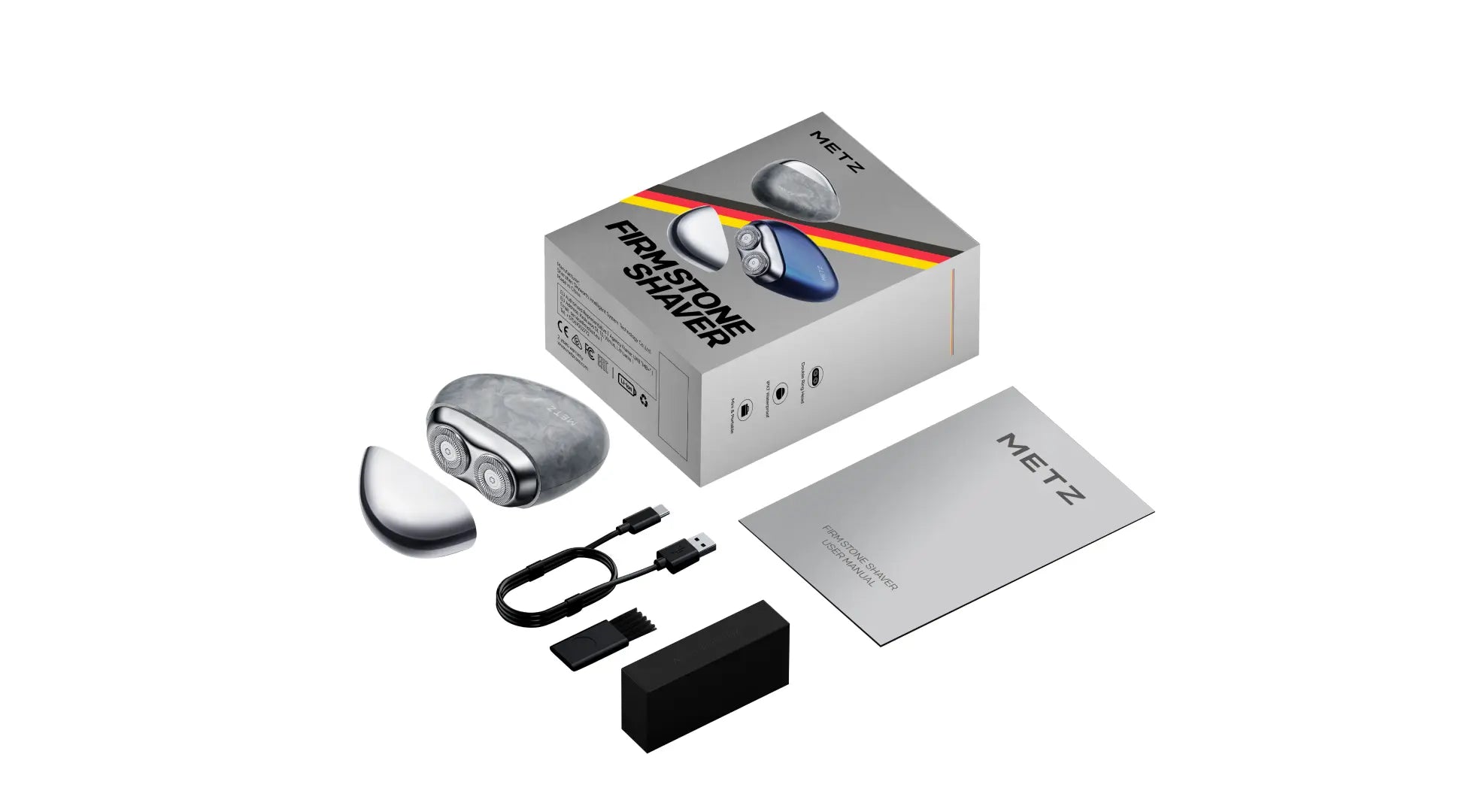 1 * Metz FirmStonr Electrci Shaver, 1 * USB Type-C Cable, 1 * Clean Brush, 1 * User Manual